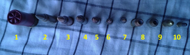 - 7.62x54mm Russian (Notice that this cartridge does not have a “rim” at the base)
