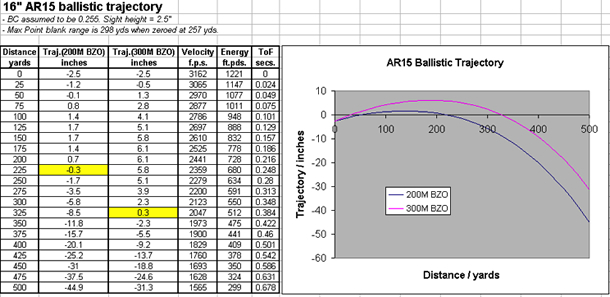 - The ballistics of the cartridge you’ve selected (how ‘high’ or ‘low’ will the bullet be at a given distance?)